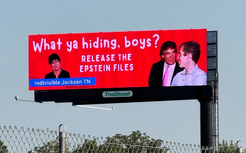 A billboard erected by Indivisible Jackson TN in Jackson, Tennessee, is demanding the release of the Epstein files, featuring images of Donald Trump, Jeffrey Epstein, and Ghislaine Maxwell. The group solicited funds to put up the billboard, which poses the question, “What ya hiding, boys?”. The Justice Department announced in July it would not release more files related to the Epstein investigation. The Associated Press reported that President Trump responded to questions on the matter by suggesting people focus on the country’s performance.