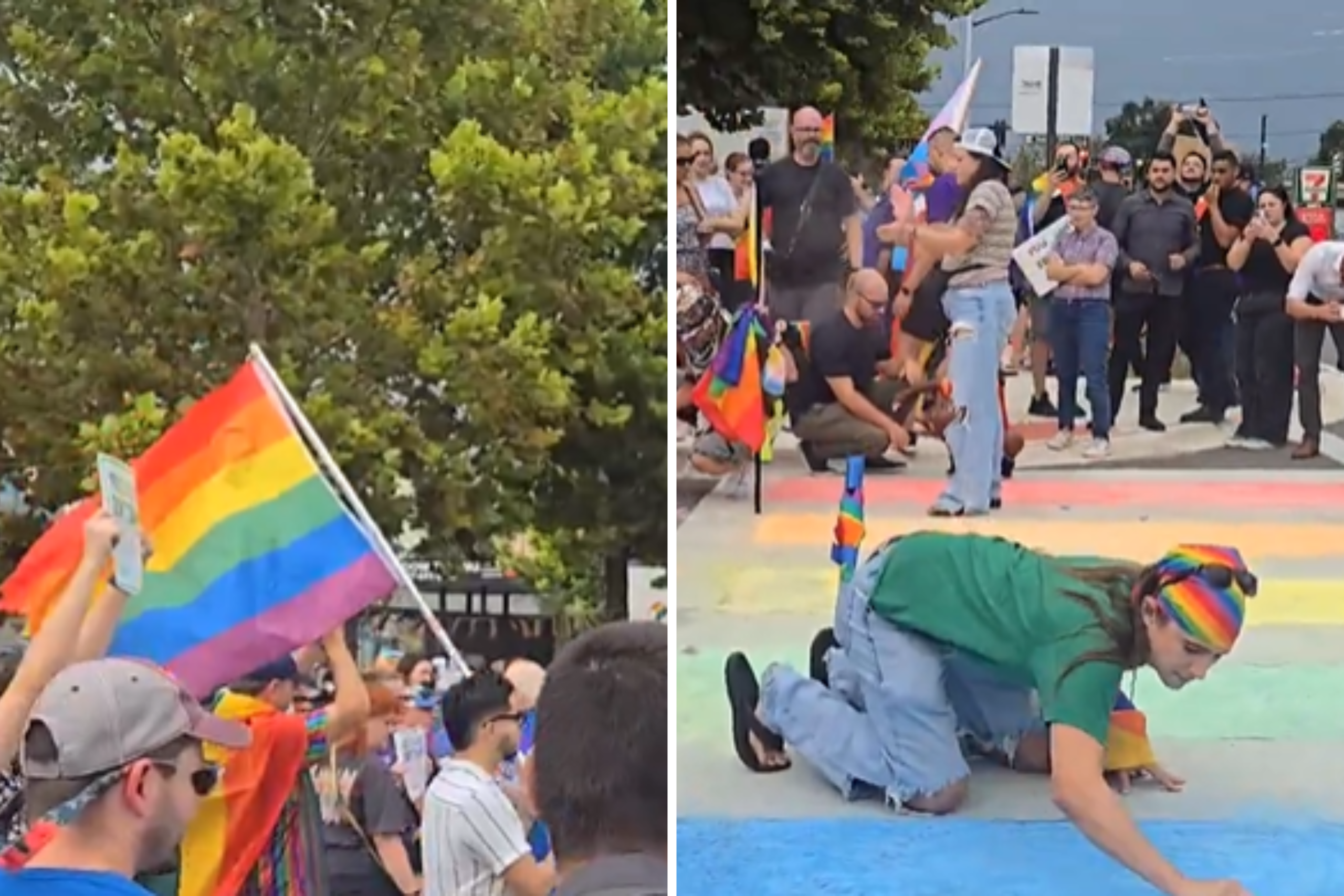 There is a very clear sense that the community believes it is facing a government that is hostile to LGBTQ+ rights and to any form of expression that challenges its worldview. The very notion of peaceful protesters needing armed protectors shows a stark view of the current state of affairs. The act of restoring the crosswalks is a powerful act of defiance that must be protected.
