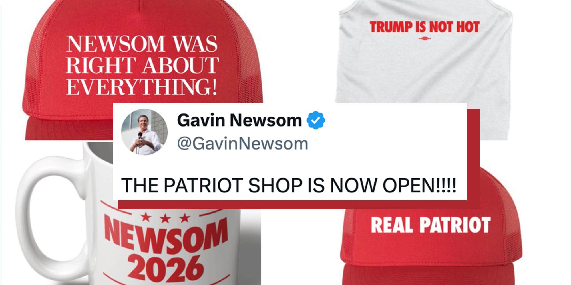 California Governor Gavin Newsom launched a “PATRIOT” merchandise store that directly parodies former President Donald Trump’s brand and signature all-caps posting style. The shop offers items with slogans that satirize Trump’s merchandise, mimicking the White House “gift shop” that has featured MAGA-themed products. Newsom’s store included jabs like “Newsom was right about everything!” and a mock “Holy Bible” supposedly signed by him, mirroring Trump’s marketing tactics. The launch garnered mixed reactions, with some praising Newsom’s tactics while others criticized his approach.